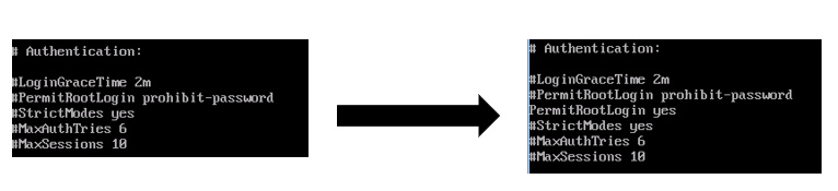 PermitRootLogin yes 옵션을 추가한 후 저장한다.