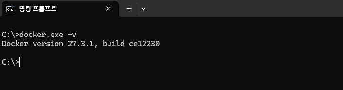 3. cmd에서 docker.exe -v 입력하여 docker 버전이 출력되는지 확인